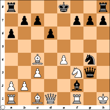 14. Kh1 Qxh3+ 15. Kg1 Ng4